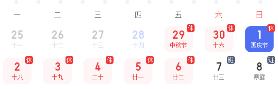 9月28日至10月6日 放假8天